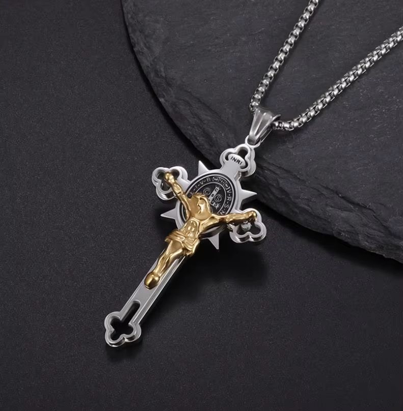 Para o homem que não abre mão de estilo nem de sua fé, este colar de cruz é a escolha ideal. Feito de aço inoxidável, é durável e prático, enquanto as tonalidades de ouro e prata elevam seu visual para um nível mais luxuoso. Como acessório religioso, ele serve como lembrete constante da crença, acompanhando você em cada momento do dia. Seja com camisa social, suéter ou camiseta, ele complementa o look sem esforço. Resistente a água leve, não precisa se preocupar com chuvas leves ou suor. Um produto feito para homens que buscam excelência em cada detalhe.