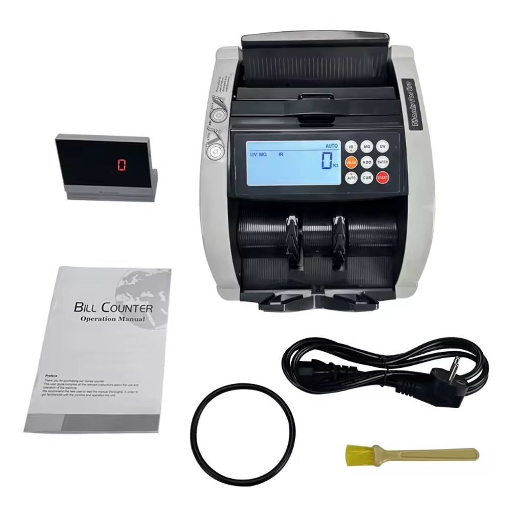 Contador de cédulas preciso para caixa! Detecção avançada de notas falsas UV/MG/IR/DD, tela LCD extra e modos de adição e lote — contagem rápida e eficiente para dólares, euros e outras moedas. Ideal para lojas, bares e estabelecimentos que lidam com dinheiro diariamente!
