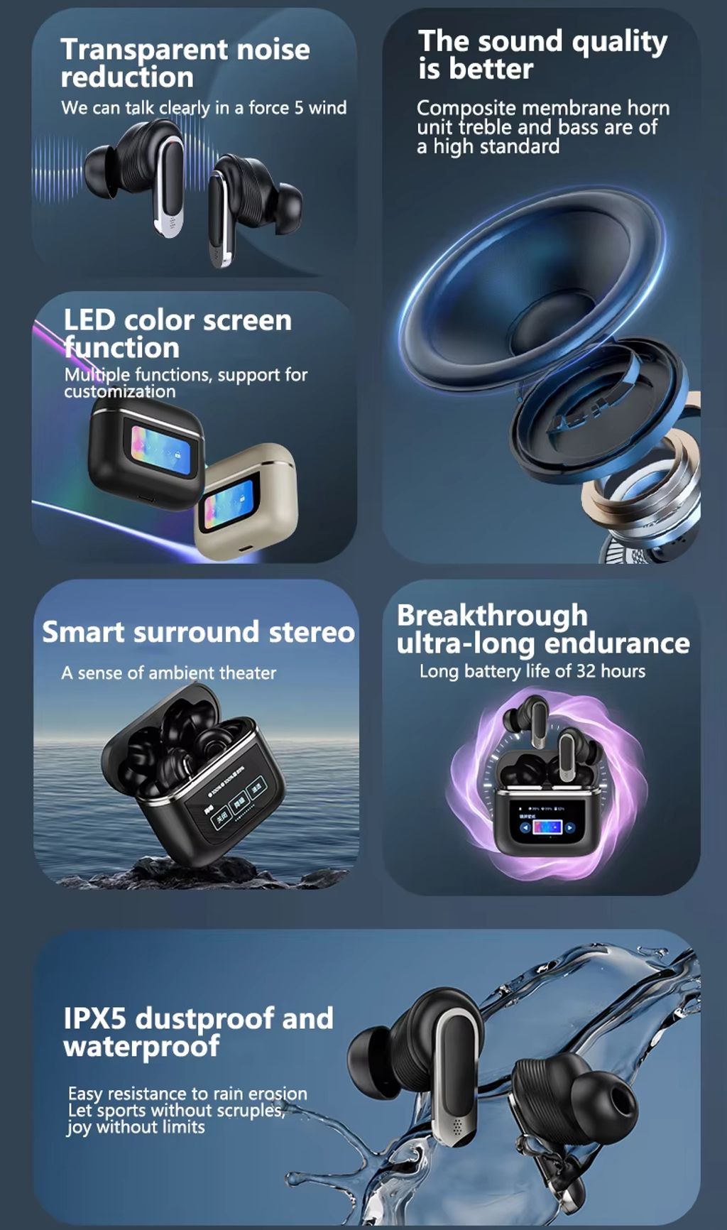 Os fones inteligentes M6 transformam sua experiência auditiva com TWS som estéreo claro e tecnologia ANC para reduzir ruído externo. A tela tática inteligente facilita o controle de músicas e chamadas, enquanto a caixa de carregamento com display LCD mostra o nível de bateria em tempo real. Conectividade Bluetooth estável garante uso sem interrupções, seja no trabalho, exercícios ou viagens. Leve e confortável para orelhas, eles combinam funcionalidade e design moderno — o parceiro ideal para quem busca qualidade sonora e praticidade no dia a dia.
