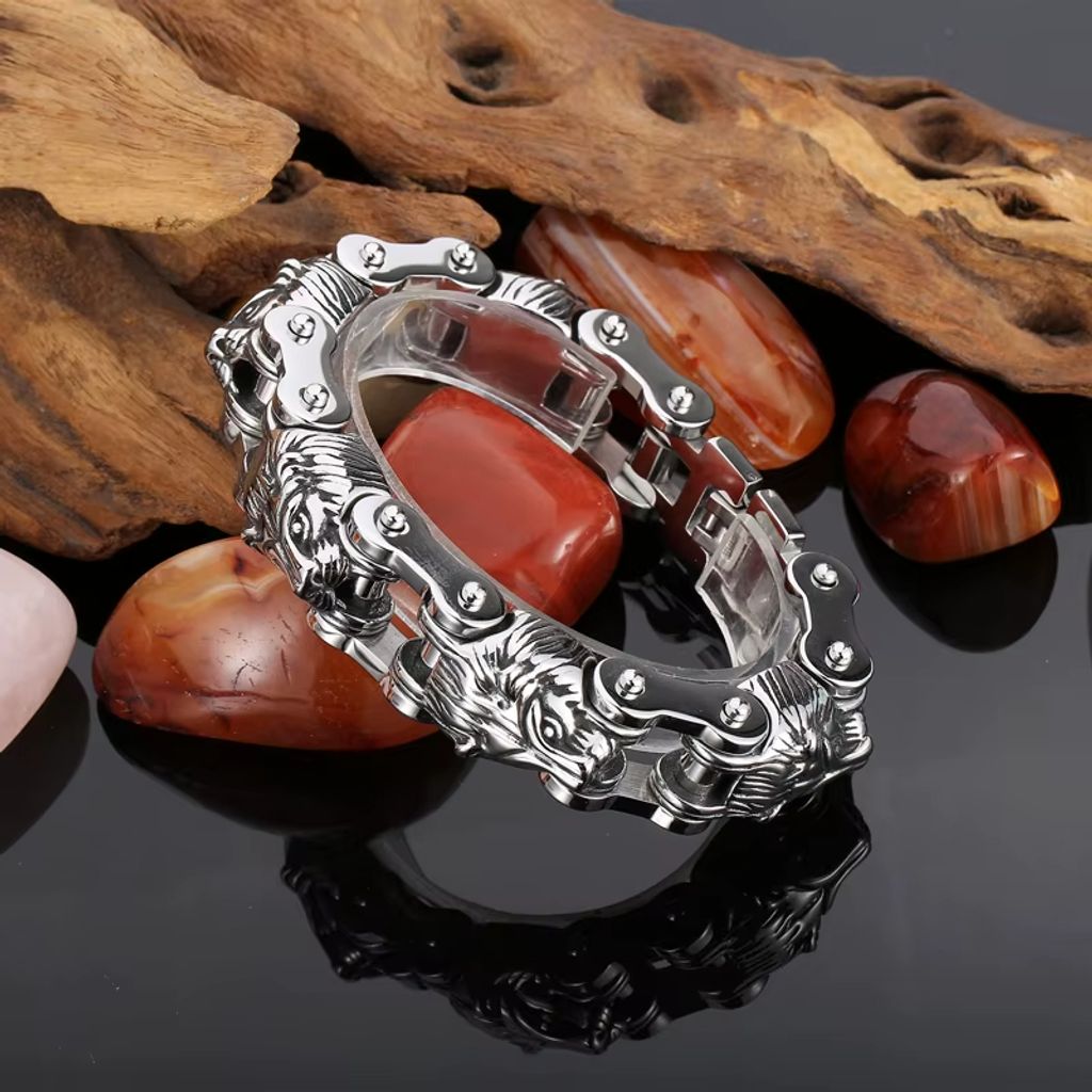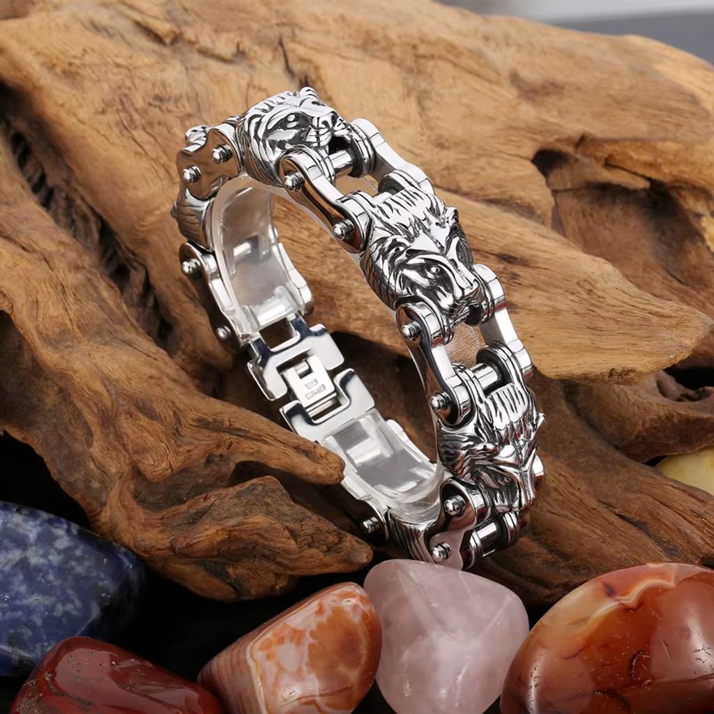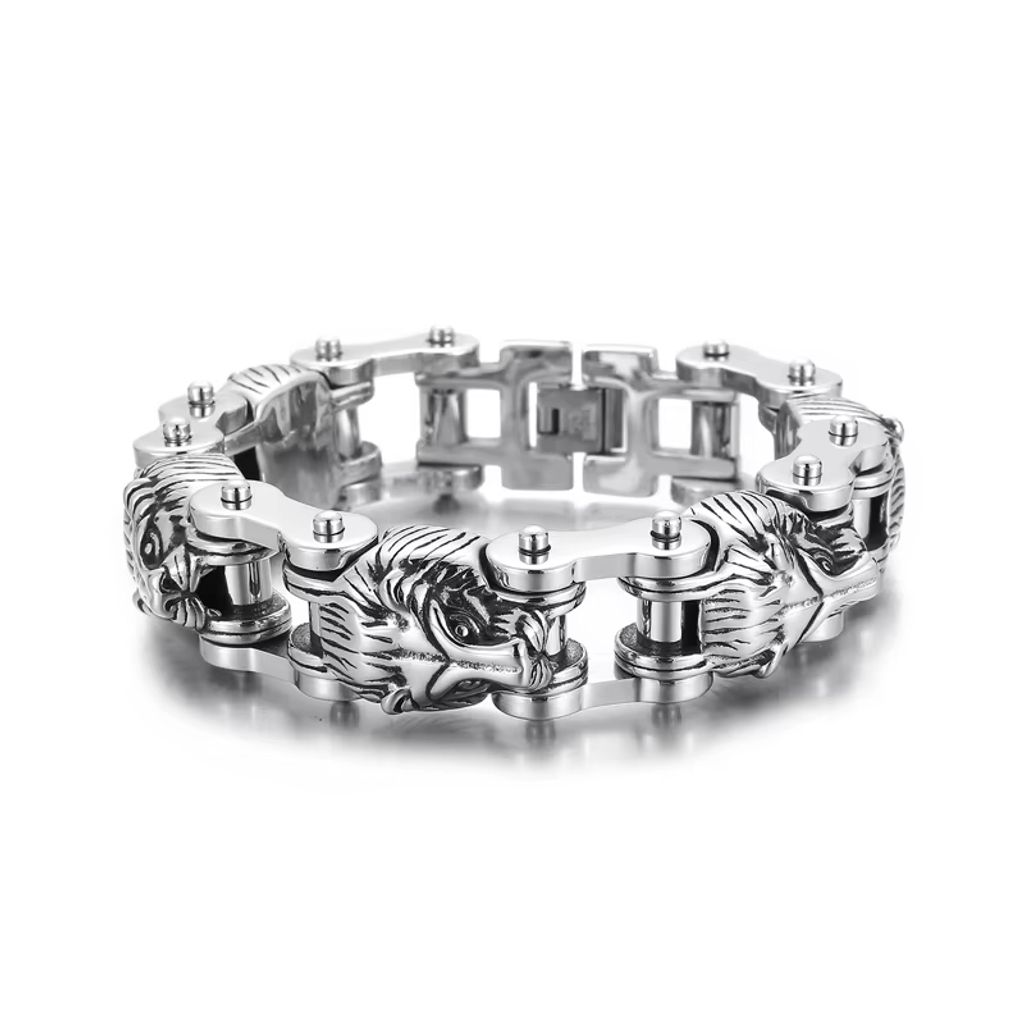 Não comprometa estilo por durabilidade! Esta pulseira de motocicleta inox masculina tem cabeça de leão imponente, série animal nova. Inox resistente, confortável e duradoura. Ideal para uso diário ou presentes. Mostra sua personalidade e amor por estilo motocicleta. Compre agora e ganhe descontos especiais!